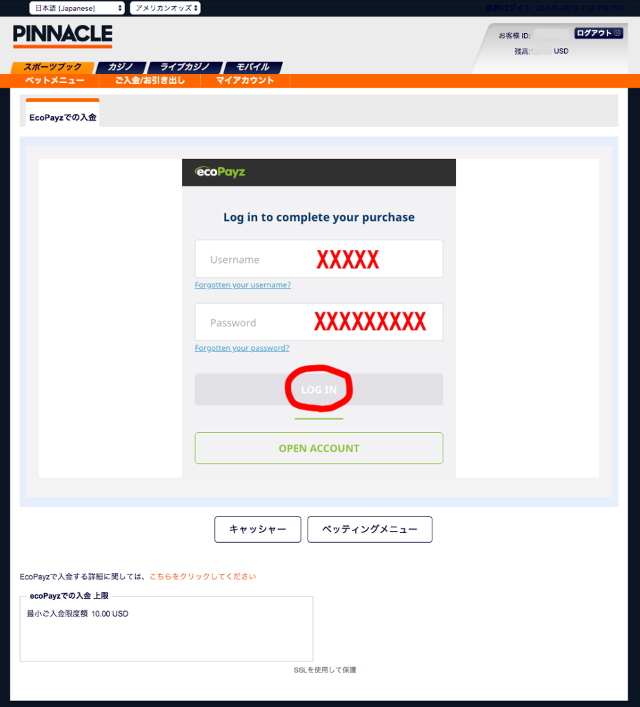 ・エコペイズ(ecoPayz)で入金の場合
