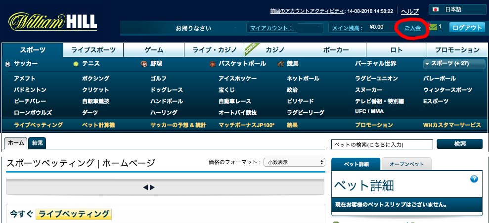 ウイリアムヒル入金方法