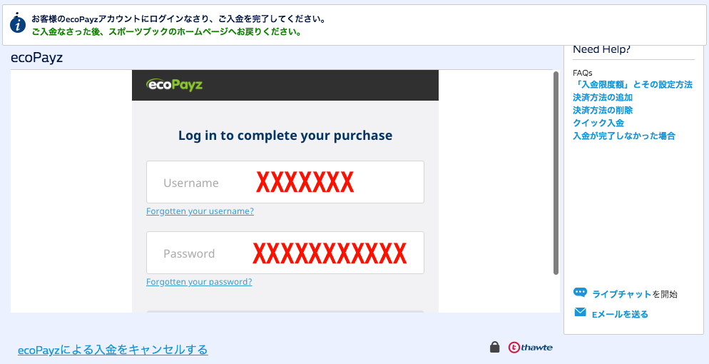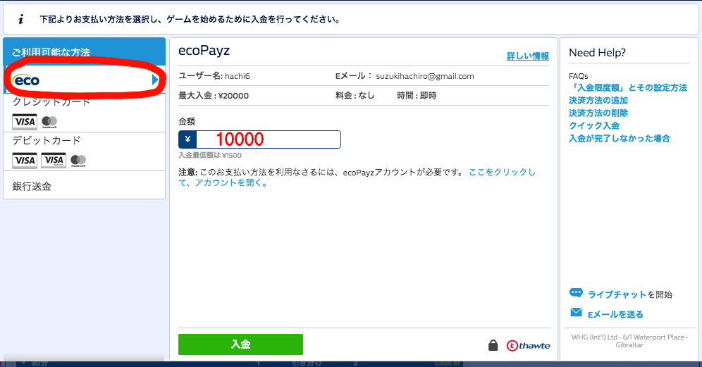 ・エコペイズ(ecoPayz)で入金の場合